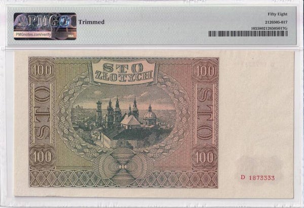 1941 Poland 100 Złotych Banknote PMG 58 – Rare WWII Polish Currency Collectible