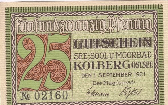 1921 – German City of Sool- und Moorbad Kolberg (Ostsee) 25 Pfennig
