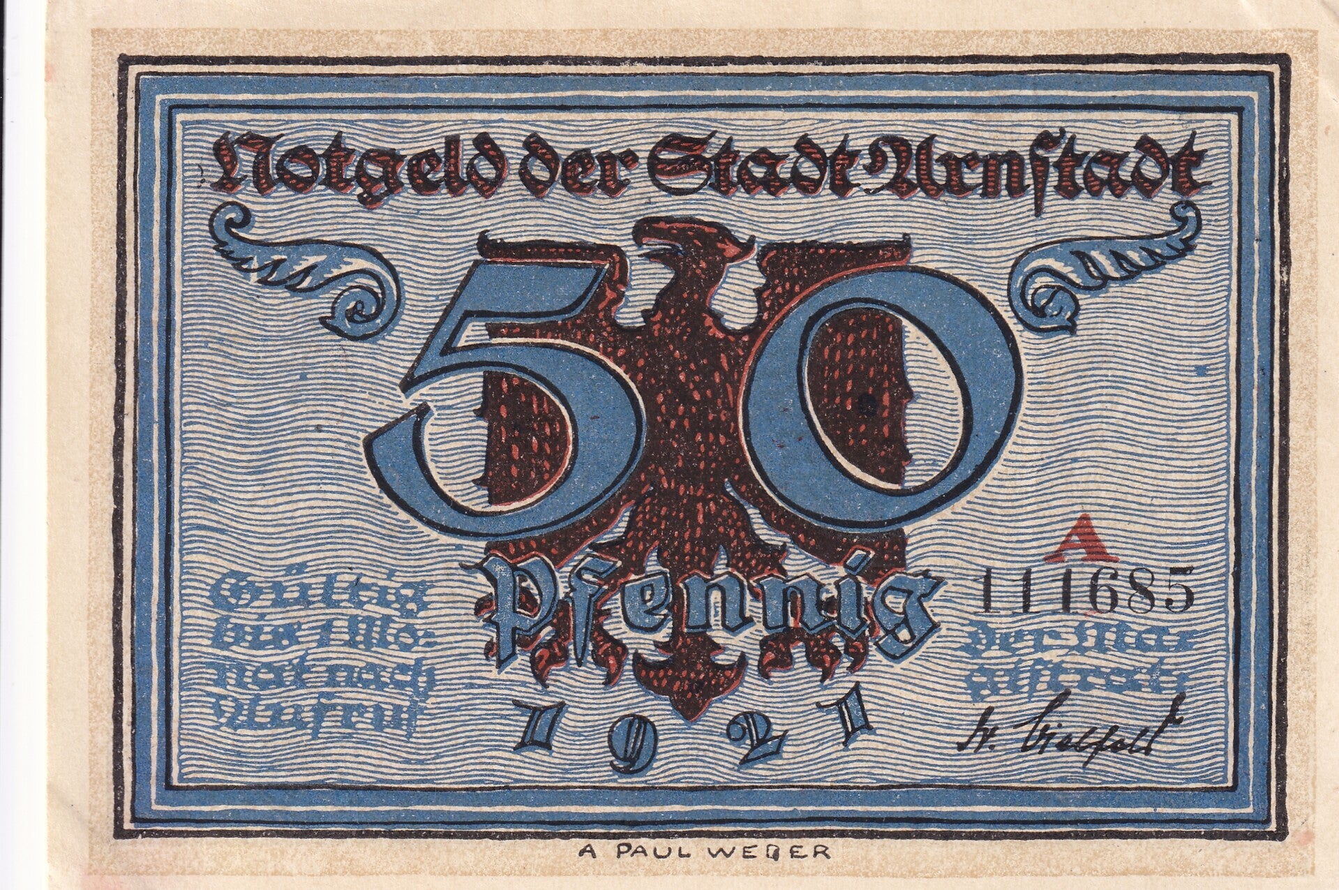 1921 – German City of Arnstadt Notgeld 50 Pfennig