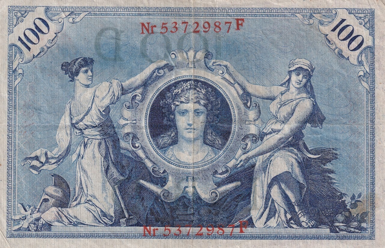 1908 German Empire Reichsbanknote 100 Mark Banknote – F / VF