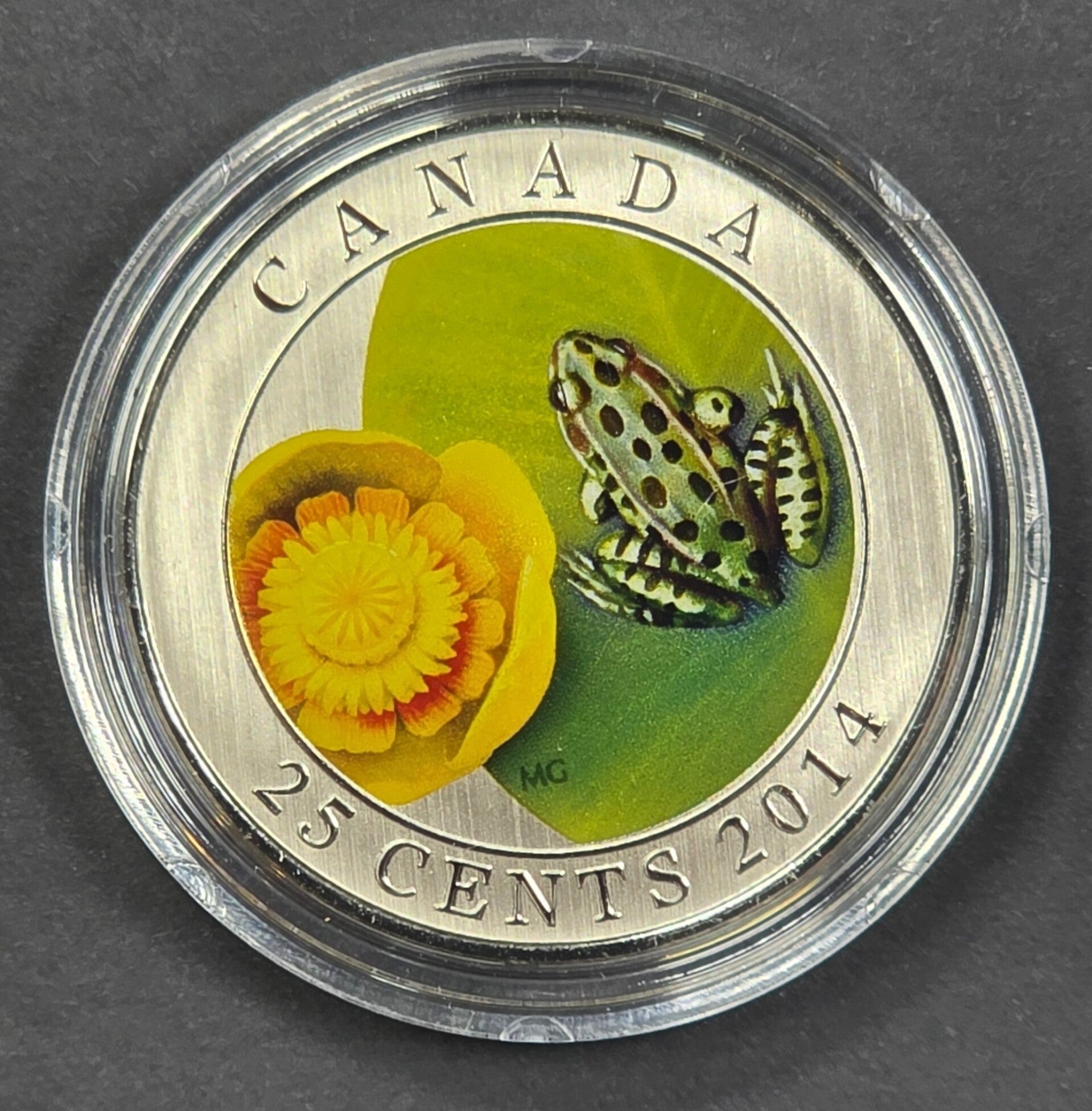 2014 Canada 25 Cents Colourized Frog Coin – Royal Canadian Mint – UNC in Capsule