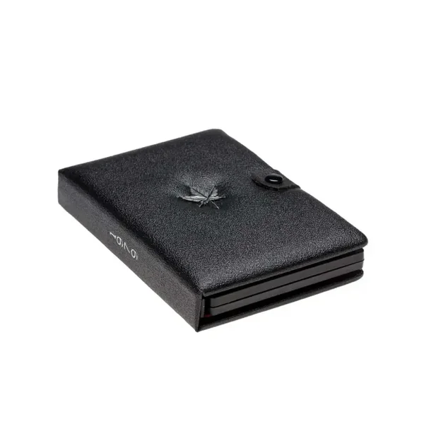Packaging: Snap-closure black leatherette case with red velvet interior