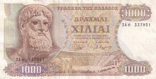 1970 Greece 1,000 Drachmai – Bank of Greece – Modern Drachma Series